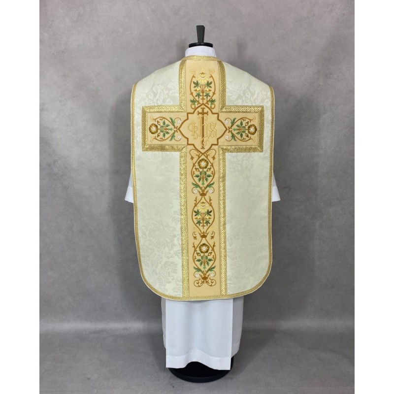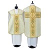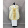 Casula romana bordada de alto relevo con línea dorada de alta calidad.