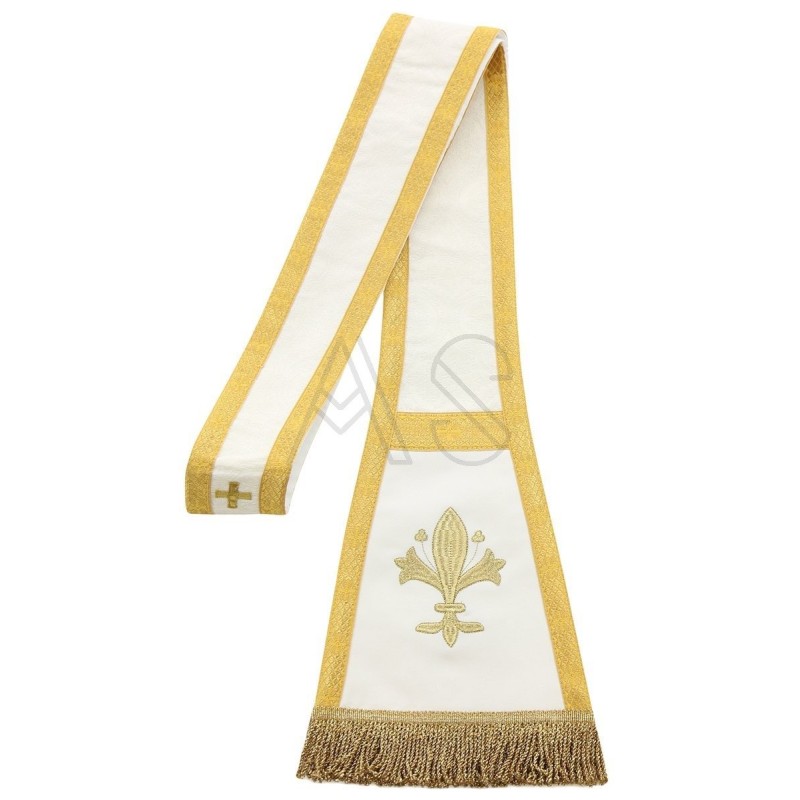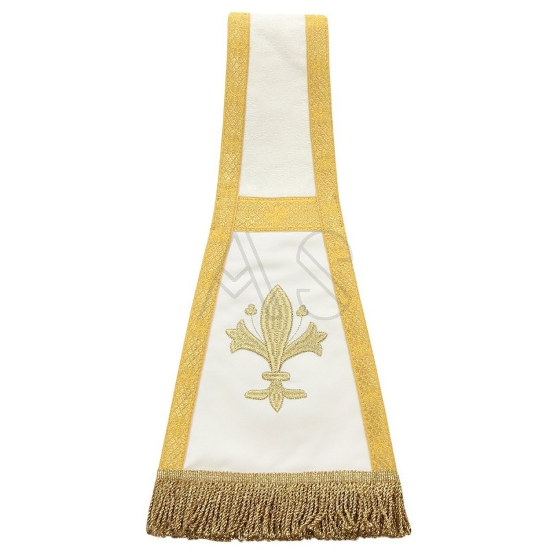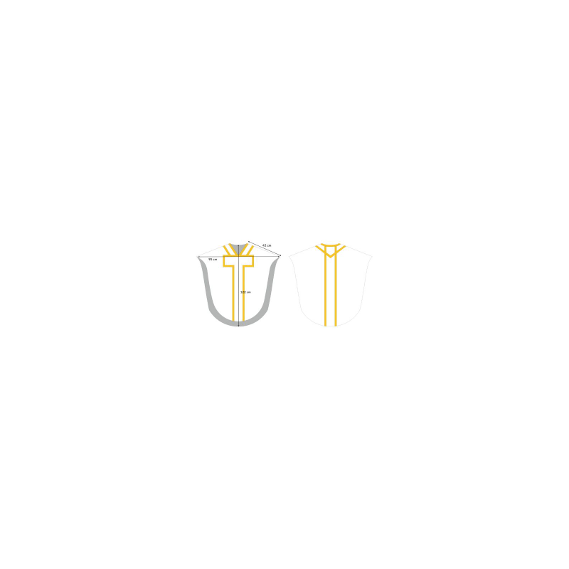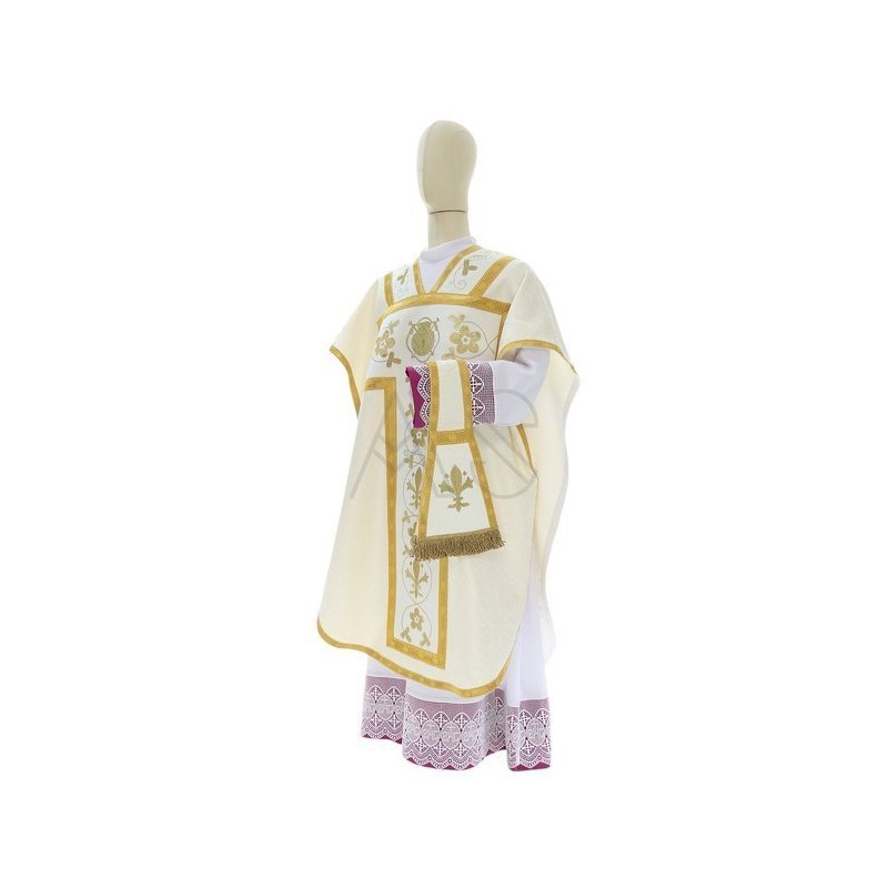 Acompanha uma estola, manípulo, bolsa corporal e véu de cálice.