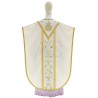 Casula modelo São Felipe Neri bordada em alto relevo com linha dourada de altíssima qualidade.
