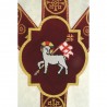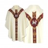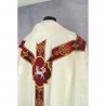 Casula semigótica bordada em alto relevo com listra de tecido em veludo e com fios metalizados de altíssima qualidade.