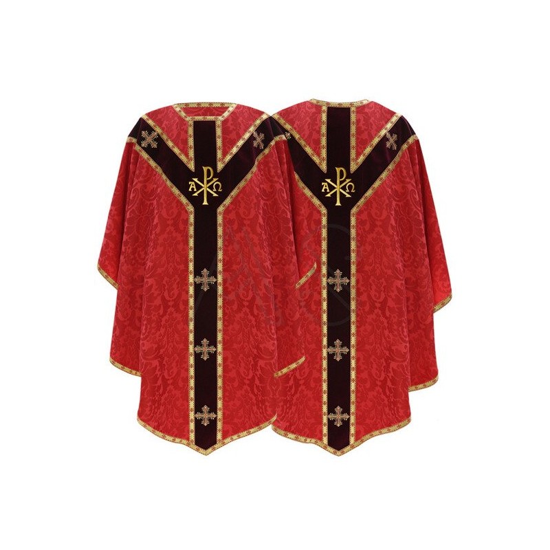 O bordado na frente e atrás tem as letras PX e cruzes feitas com linha dourada sobre o tecido de veludo.