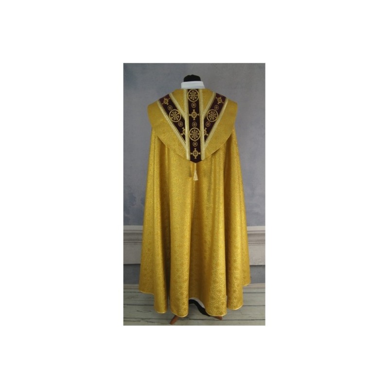 Capa semigótica bordada con cruz delante y detrás con listra de tejido de alta calidad.