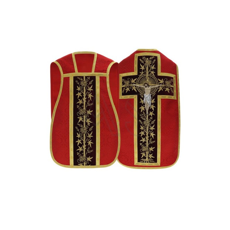 Casula romana con bordado en alto relevo con línea dorada de alta calidad.