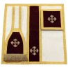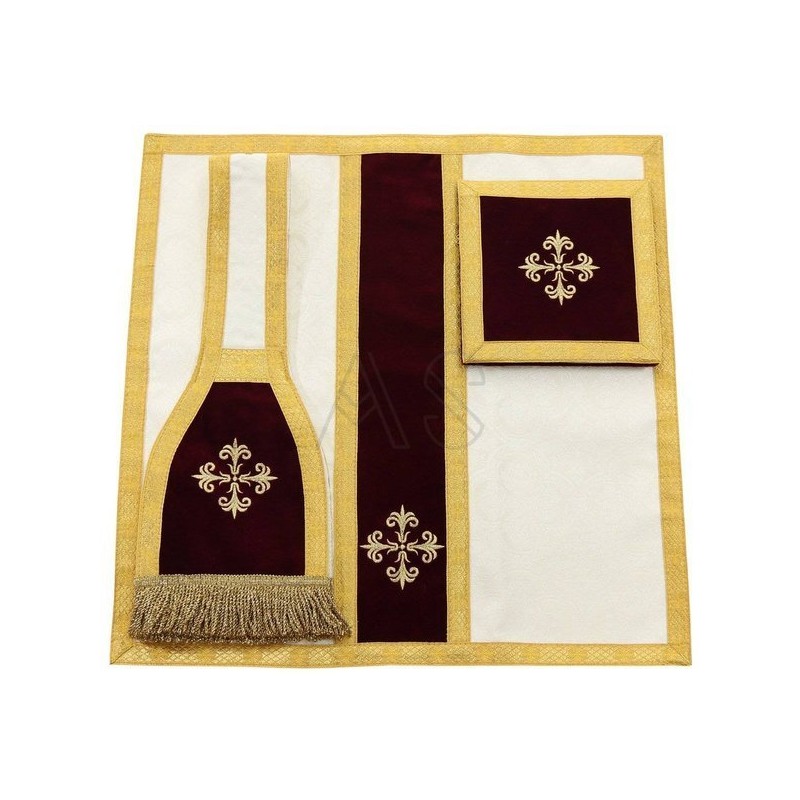 Acompanha uma estola, manípulo, bolsa corporal e véu de cálice.