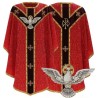 Casula semigótica bordado na frente e atrás em alto relevo sobre tecido de veludo de altíssima qualidade.