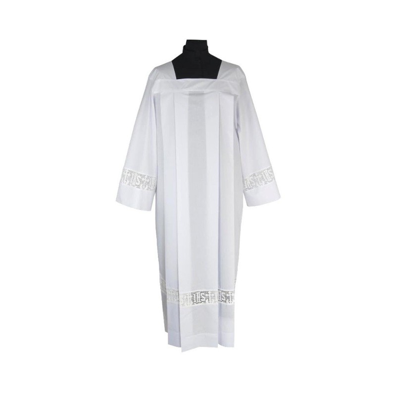 Túnica con pregas bordada con las letras JHS sobre la renta de alta calidad.