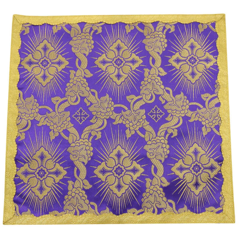 Acompanha uma estola, manípulo, bolsa corporal e véu de cálice.
