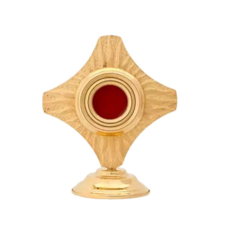 Este relicario, dorado, importado y de altísima calidad está relacionado con la fe en la comunión de los Santos y en la intercesión de los Santos con Dios.Los Santos, por su cercanía con Dios y por su santidad ejemplar, interceden en favor de los fieles y les ayudan en sus necesidades espirituales y temporales.Las reliquias, contenidas en los relicarios, se consideran una conexión tangible con los Santos y se veneran como un medio de buscar su intercesión y gracia.Obtenga en nuestra tienda este símbolo educativo a través de los testigos de los Santos en la vida de la Iglesia para usar en las procesións, fiestas y peregrinaciones para la veneración de los fieles.Mira los otros modelos.