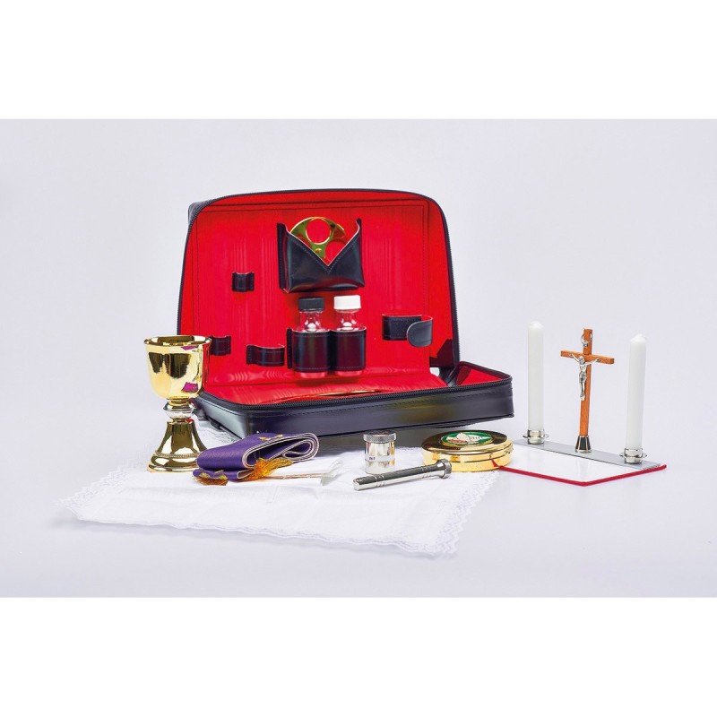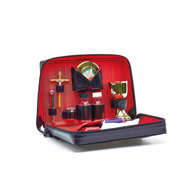 Maleta de cuero con equipamiento litúrgico completo para la celebración de la Santa Misa, producto italiano de la más alta calidad.