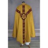 Acompanha uma estola com detalhe em veludo e fio dourado.