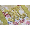 Todo el conjunto es forrado y el bordado hecho a mano con cable metalizado dorado.