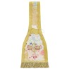Esta casilla fue cuidadosamente confeccionada con tejido fino y decorada con bordados religiosos de alta calidad.