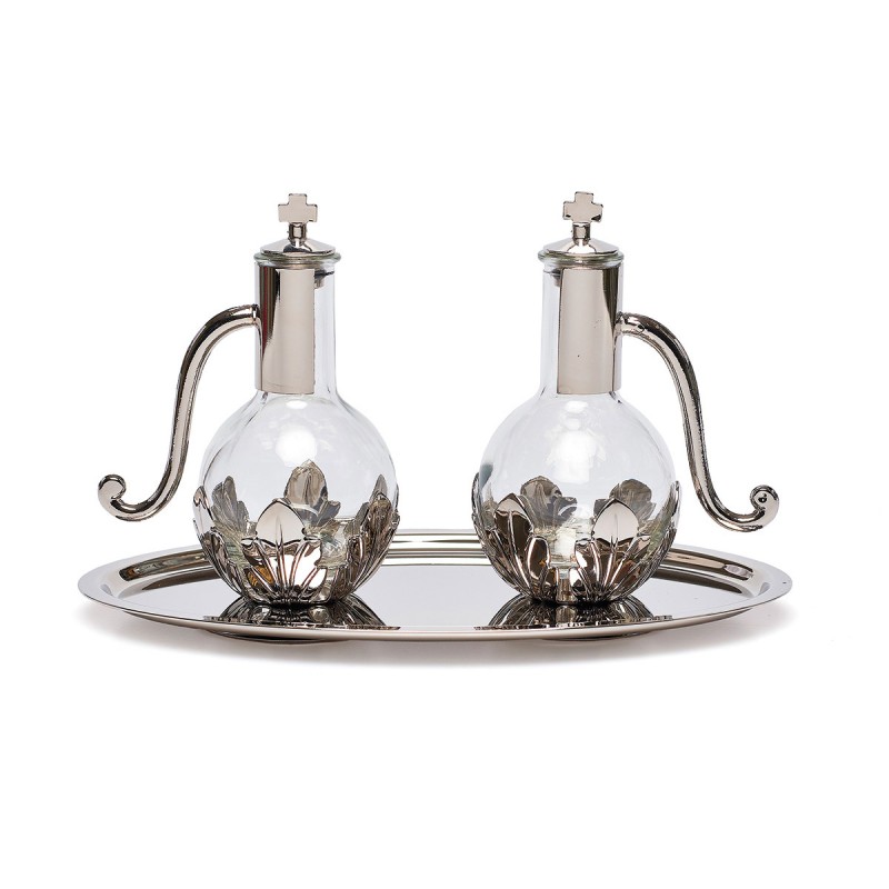 Plato y adornos hechos de latón de color plata. Los ganchos y tapones de las galetas están hechos de metal de color plateado.