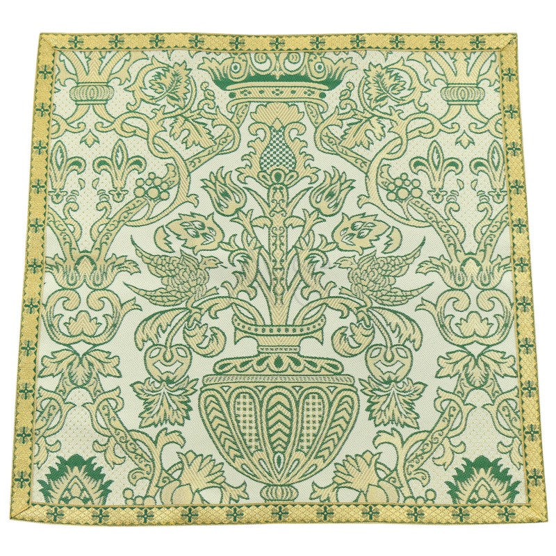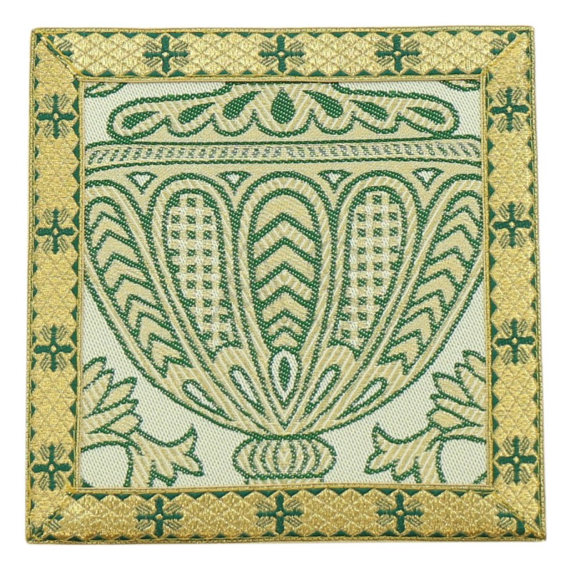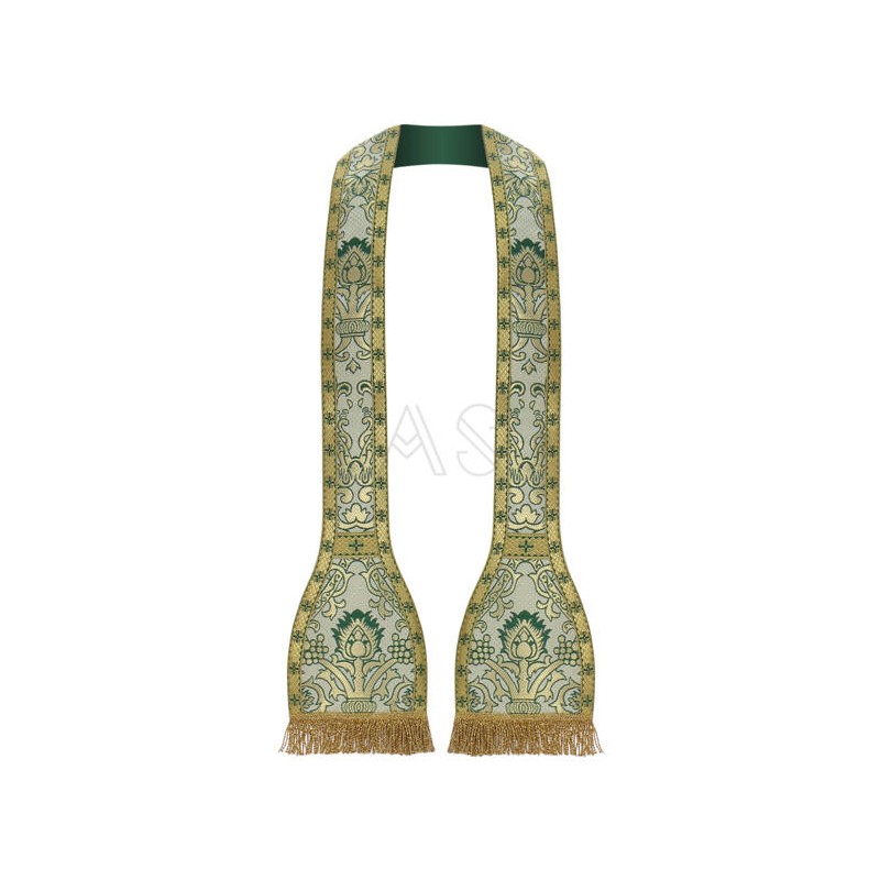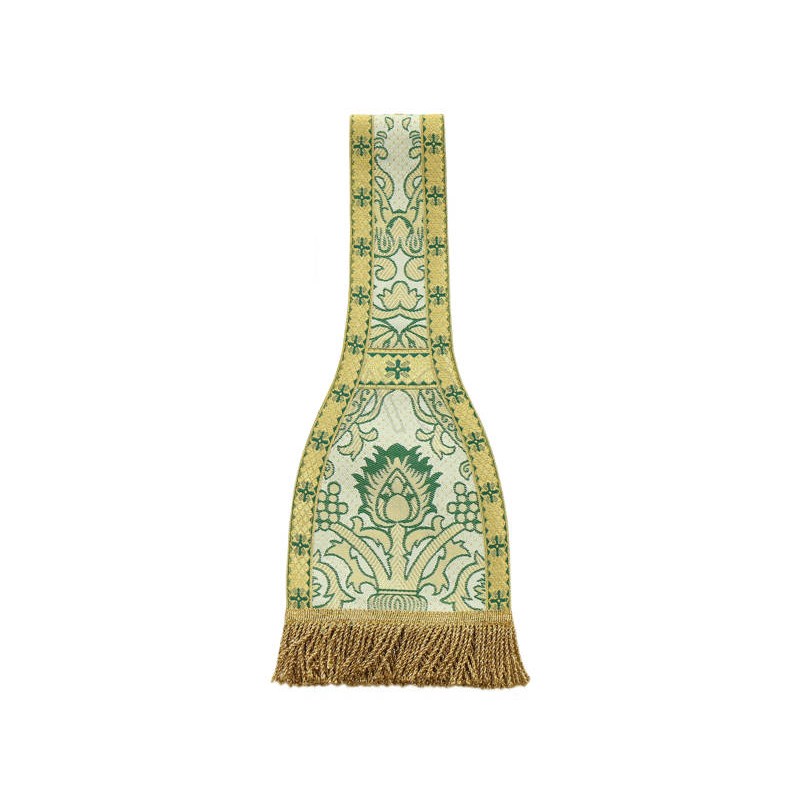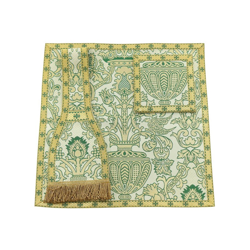 Acompanha uma estola, manípulo, bolsa corporal e véu de cálice.