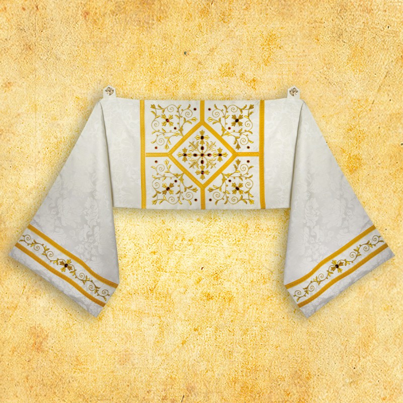 Capa de asperge gótica bordada con hilo dorado, y decorada a mano con piedras de alta calidad.
