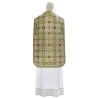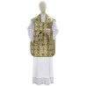 Esta cápsula romana completa con estola, manípulo, velo de cáliz y bolsa corporal, forrada y bordada sobre el propio tejido de seda e importada de la más alta calidad es un vestido litúrgico de gran importancia en la celebración de la Santa Misa, ya que dirige la atención de los fieles al misterio y la reverencia de la Eucaristía. Al usarla, el sacerdote se conecta con la historia y la tradición de la Iglesia, transmitiendo un sentido de continuidad con los sacerdotes que lo precedieron a lo largo de los siglos y ayuda a crear un ambiente sagrado. Comprarlo en nuestra tienda y ver los otros modelos.