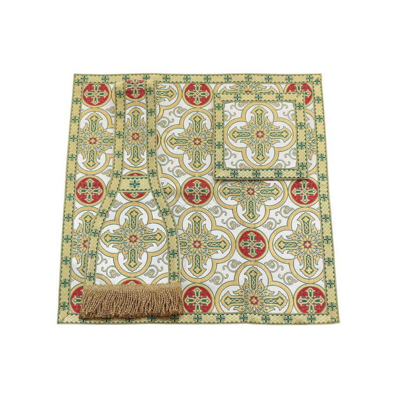 Acompaña una estola, un manipillo, una bolsa corporal y un velo de cáliz.