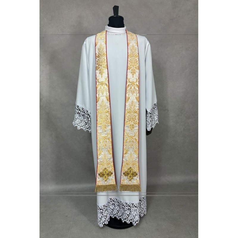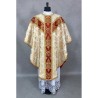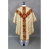 Cásula semigótica con acompañamiento de manípulo, bolsa corporal y vello de cálice bordado de alta calidad.