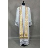 Casula semigótica com acompanhamento de manípulo, bolsa corporal e véu de cálice bordado de altíssima qualidade.
