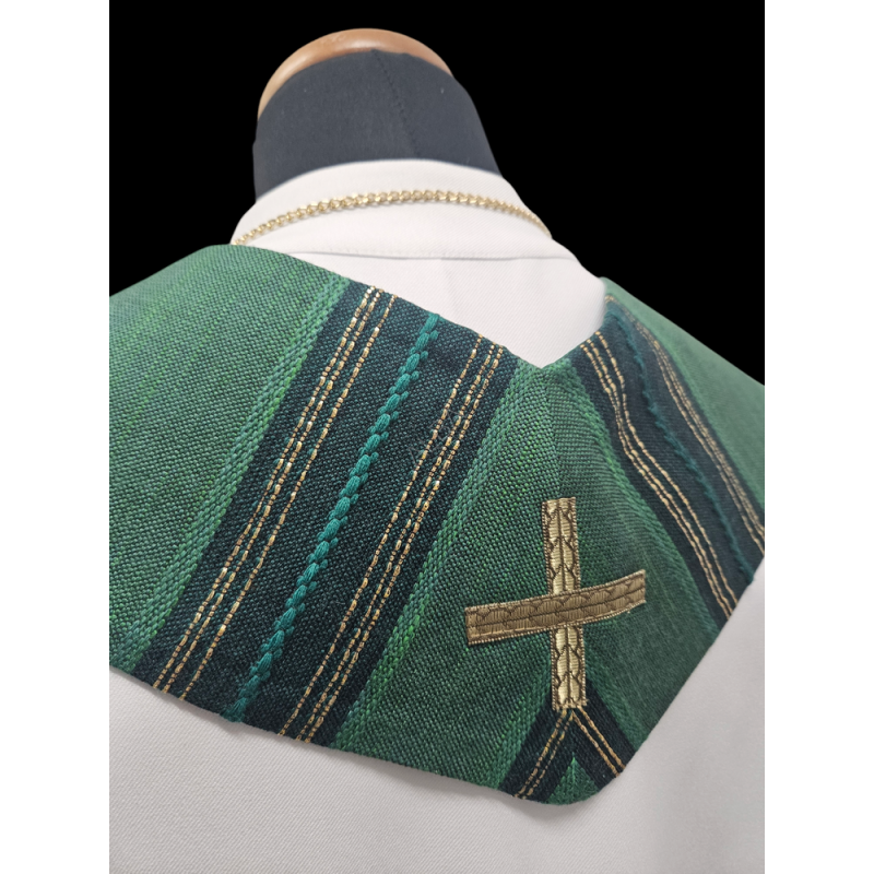 Estola tradicional bordada en alto relevo con línea dorada de alta calidad.