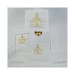 Acompanha uma estola, manipulo, bolsa corporal e véu de cálice.