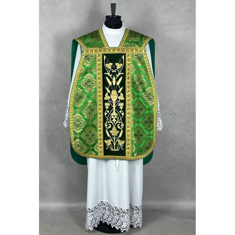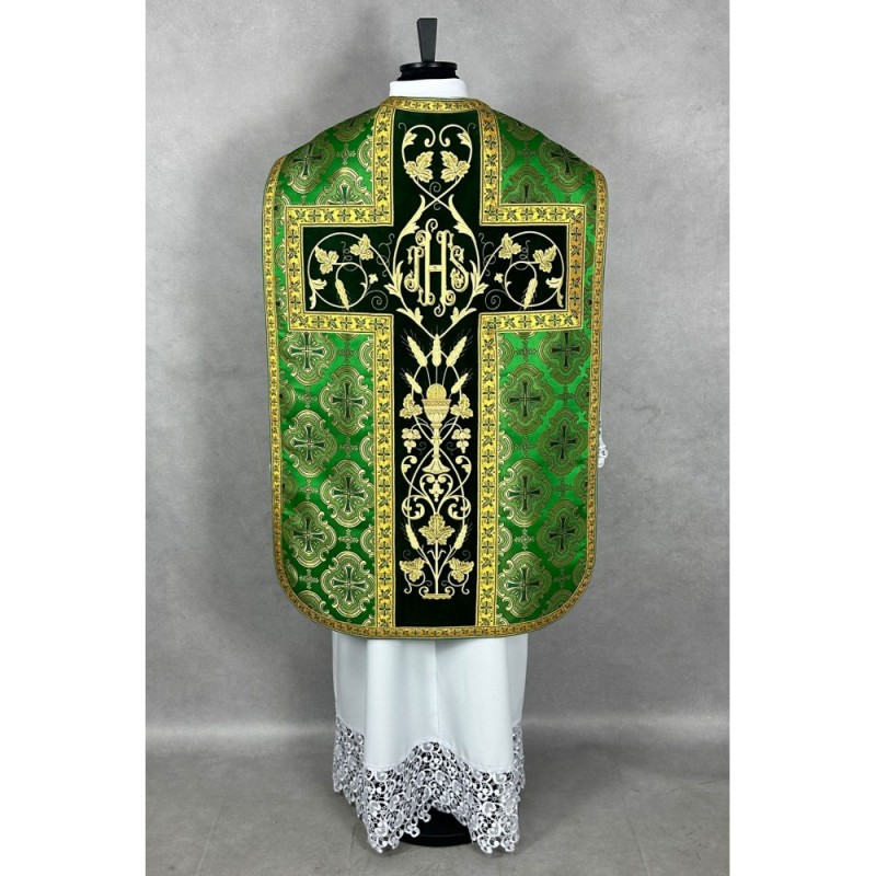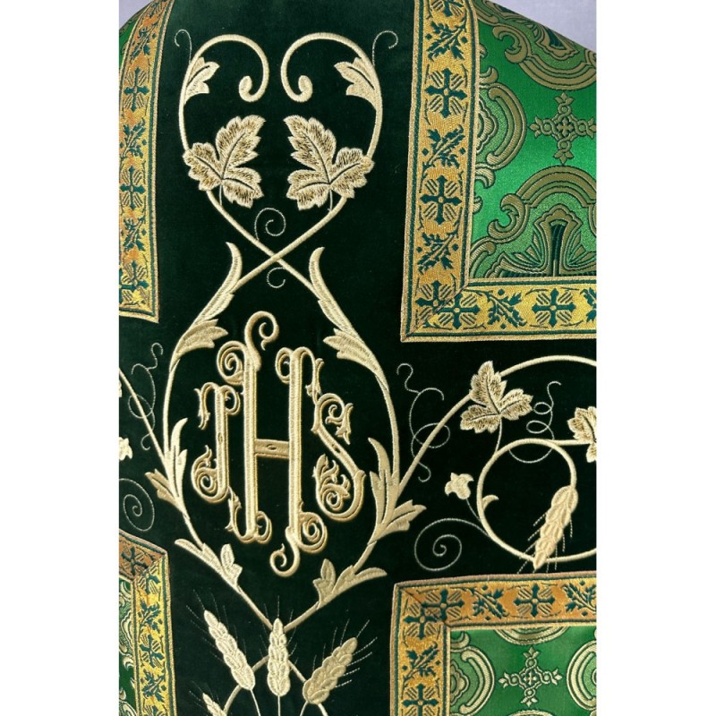 Casula romana bordada na frente e atrás em alto relevo com fio metalizado
