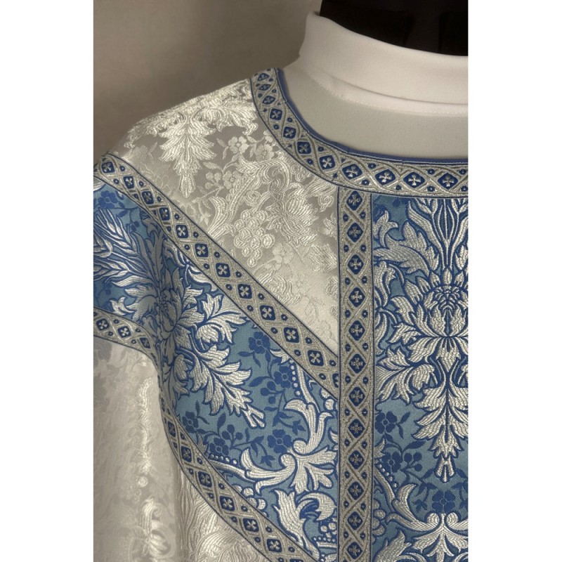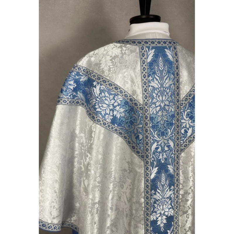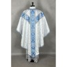 Casula semigótica Mariana bordada em alto relevo com linha dourada de altíssima qualidade.
