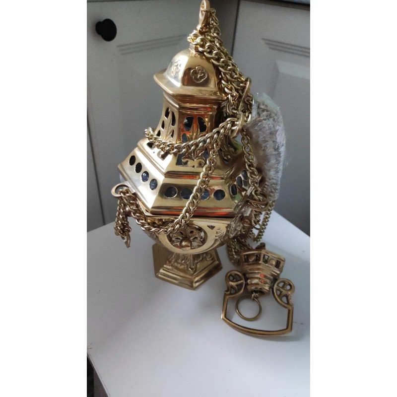 Este turíbulo, producto italiano de la más alta calidad, es de gran importancia en la Iglesia Católica por representar el simbolismo del incienso, crear un ambiente litúrgico especial, mantener el vínculo con la tradición, ser usado en ritos de consagración y demostrar sacralidad y reverencia por los misterios de la fe. Al adquirir este producto la Iglesia demuestra su cuidado pastoral, porque representa el simbolismo y la reverencia de la devoción de los fieles durante las celebraciones litúrgicas. Mira los otros modelos.
