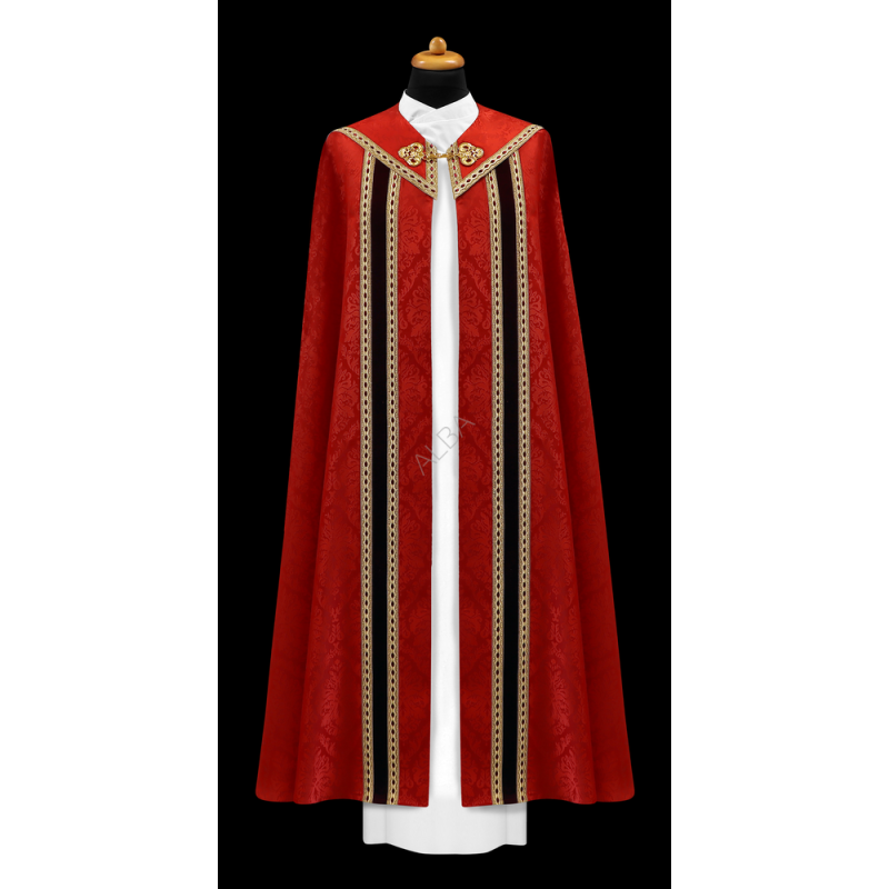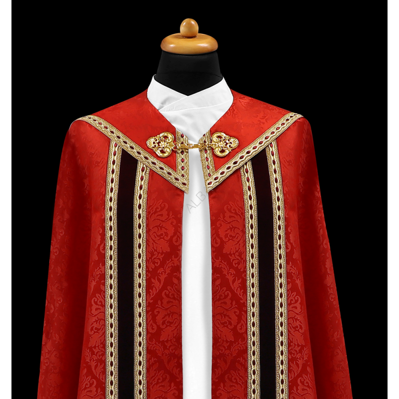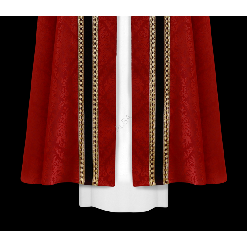 Capa de asperge gótica bordada delante y detrás en alto relevo con línea dorada.