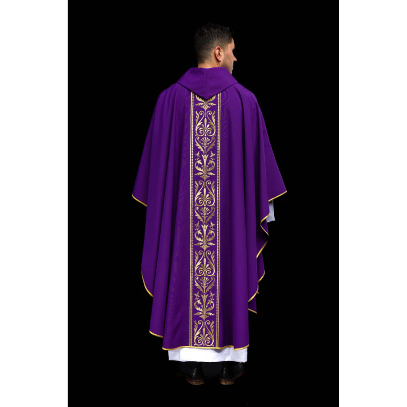 Casula gótica com galão bordado no computador na frente igual nas costas de altíssima qualidade.