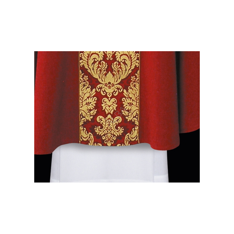 O galão é confeccionado em tecido de veludo com bordado de cruz feita de fio metalizado dourado.