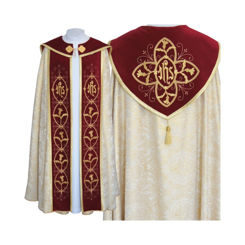 Capa de asperge gótica bordada en alto relevo con fios metalizados dorado de alta calidad.