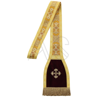 Véu umeral litúrgico bordado na parte de trás em alto relevo de altíssima qualidade.