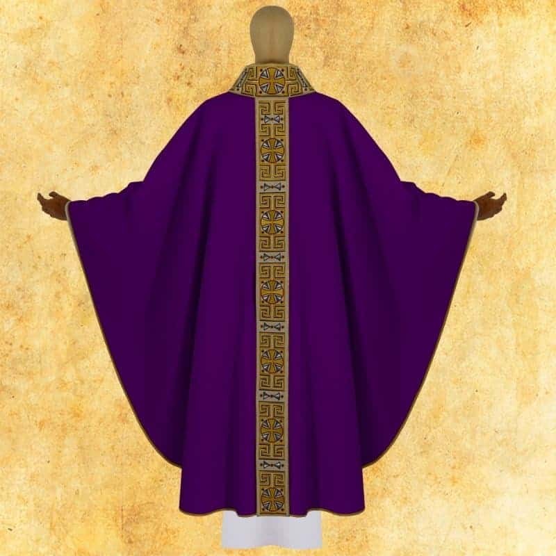 Casula romana bordada em alto relevo com linha dourada de altíssima qualidade.