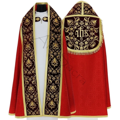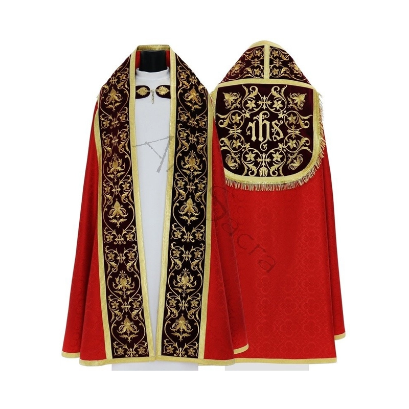 Capa de Asperge romana com bordados em veludo. Tecido Adamascado.