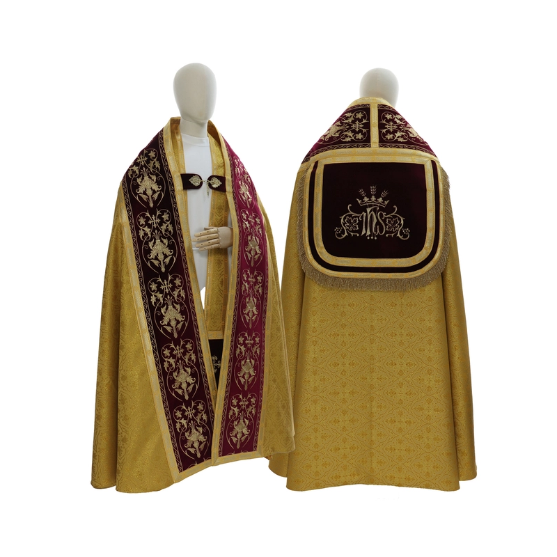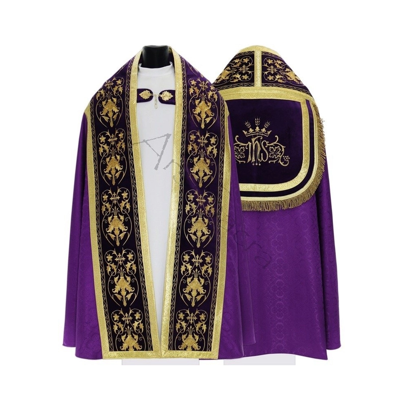 Capa de Asperge romana com bordados em veludo. Tecido Adamascado.