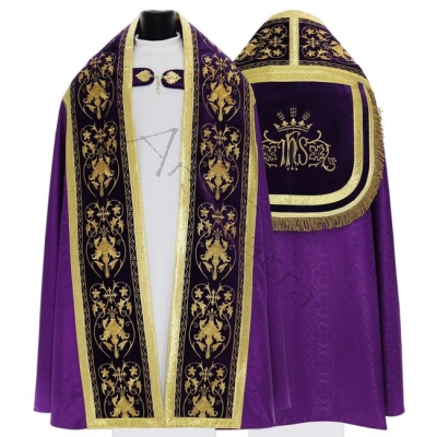 Casula semigótica bordada na frente e atrás com fios metalizados de altíssima qualidade.