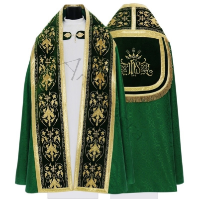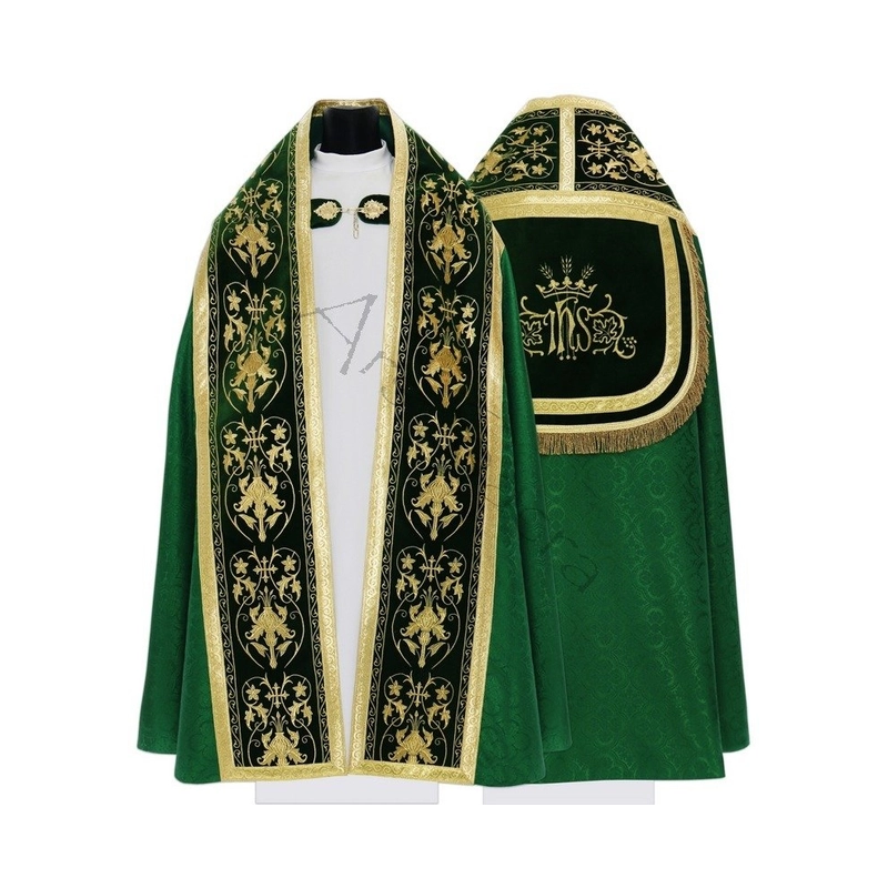 Capa de Asperge romana com bordados em veludo. Tecido Adamascado.
