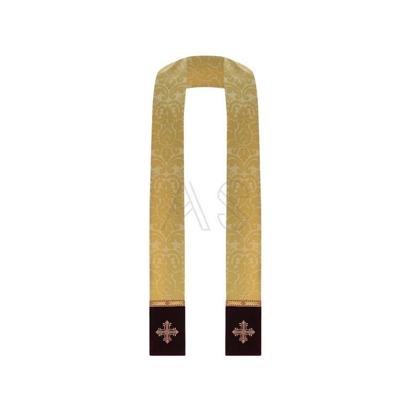 Casula romana bordada em alto relevo com linha dourada.