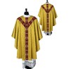 Casula semigótica bordada na frente e atrás com listra de tecido de veludo e