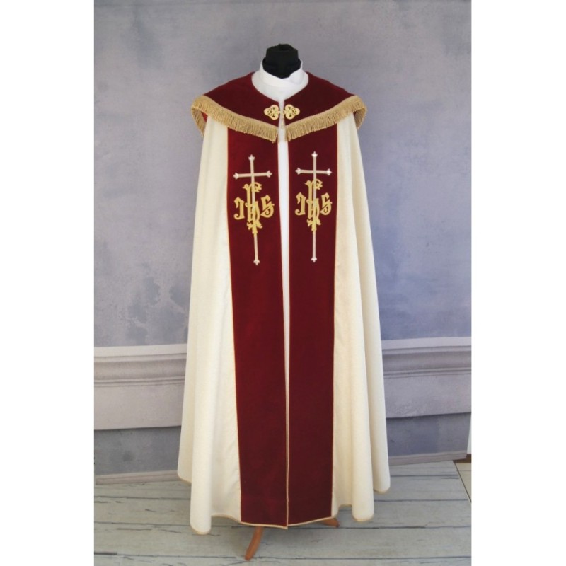 Dalmática romana na frente e atrás com listras de tecido de veludo de altíssima qualidade.