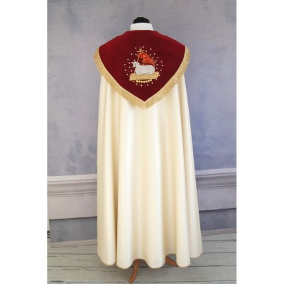 No capuz tem a imagem bordado com Cordeiro de Deus.