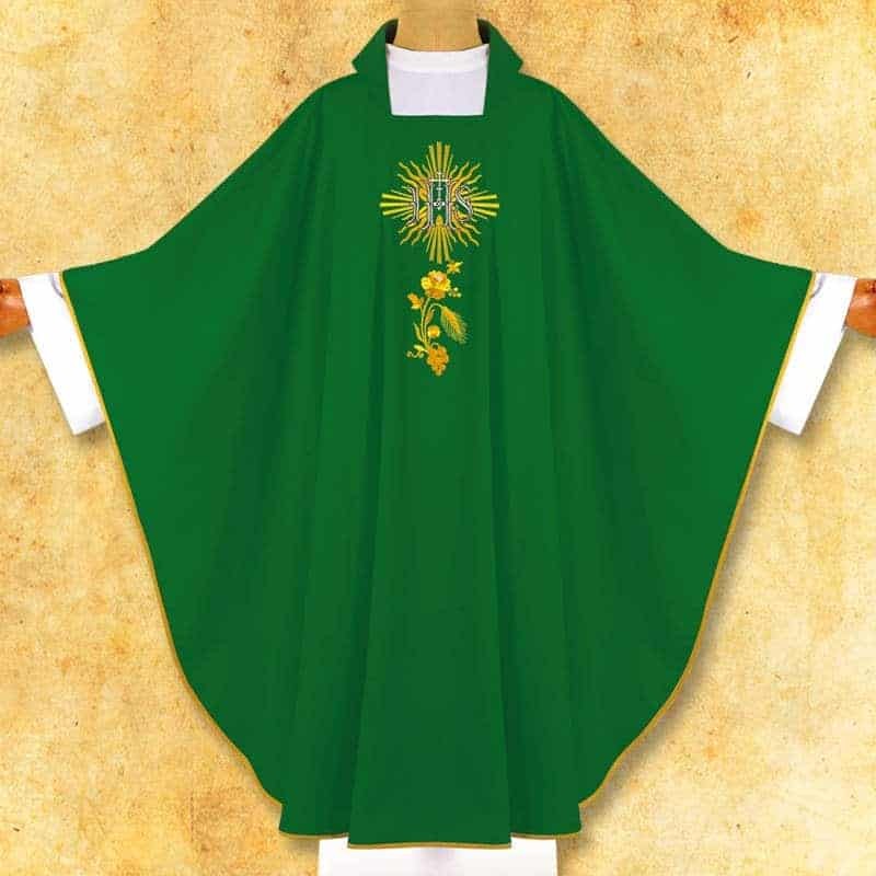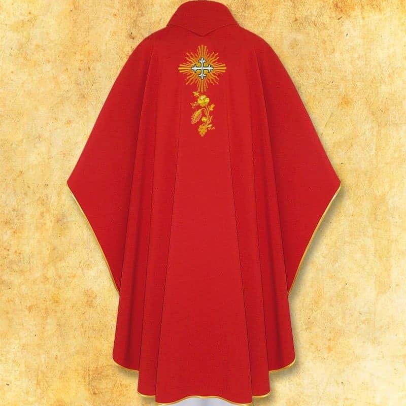 Casula gótica bordado na frente e atrás em alto relevo com fio dourado de altíssima qualidade.