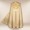 Véu umeral litúrgico bordado na parte de trás em alto relevo com linha dourada de altíssima qualidade.
