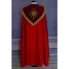 Casula gótica bordada na frente e atrás em alto relevo com fios dourados.