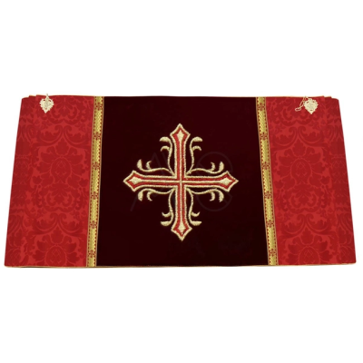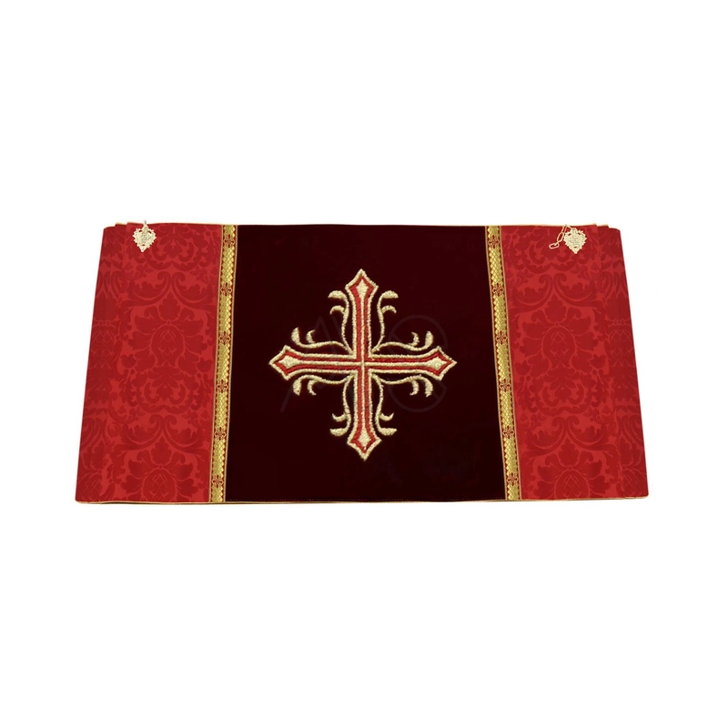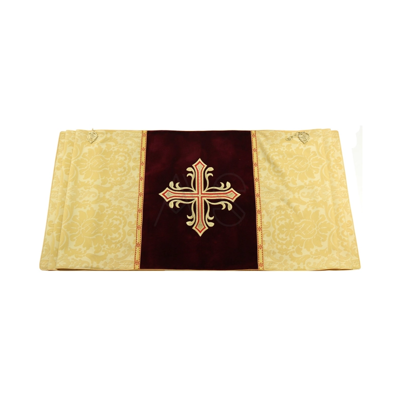 Véu umeral litúrgico bordado na parte de trás em alto relevo com detalhe em veludo de altíssima qualidade.