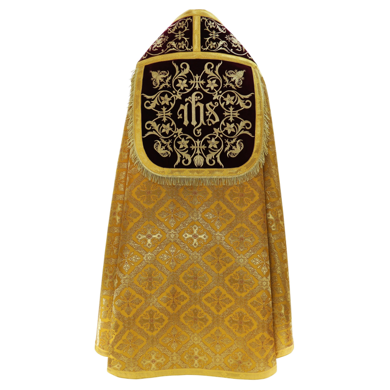 Capa de asperge romana bordada em alto relevo. Tecido: Seda Italiana.