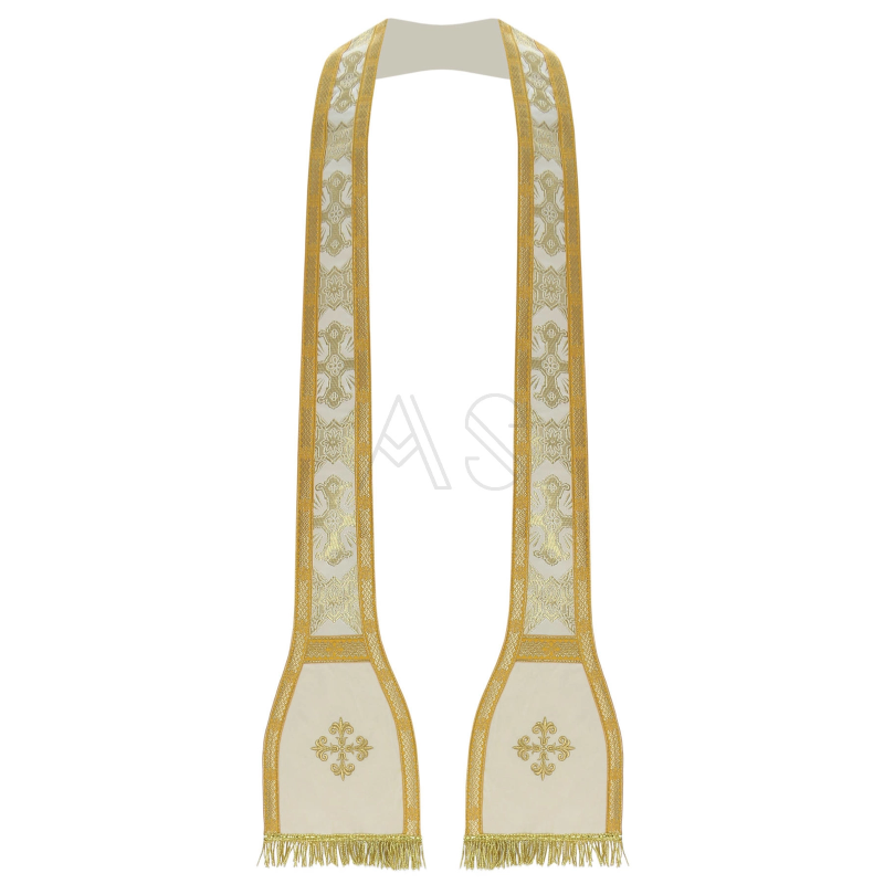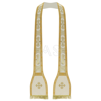 Véu umeral litúrgico bordado com fio dourado, e decorado com pedras de altíssima qualidade.