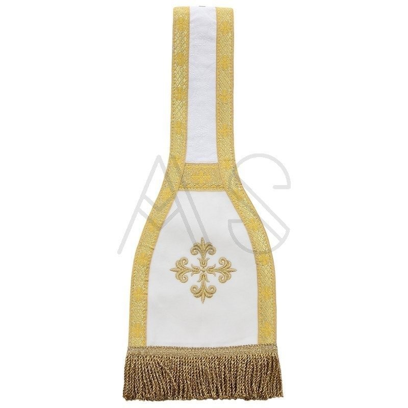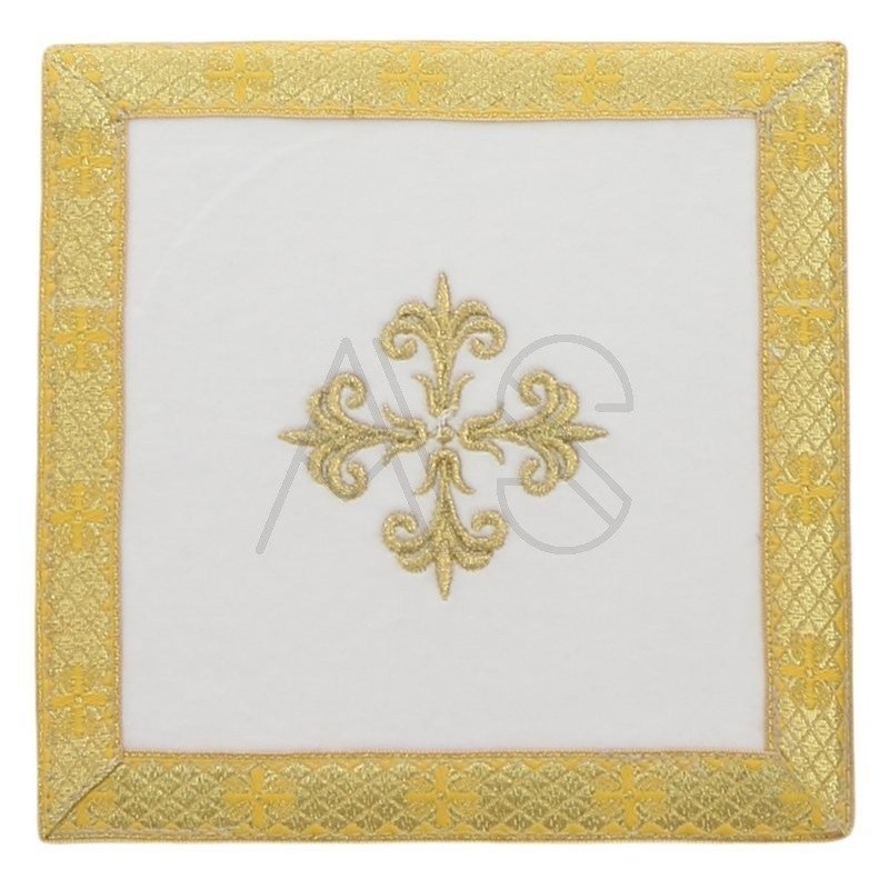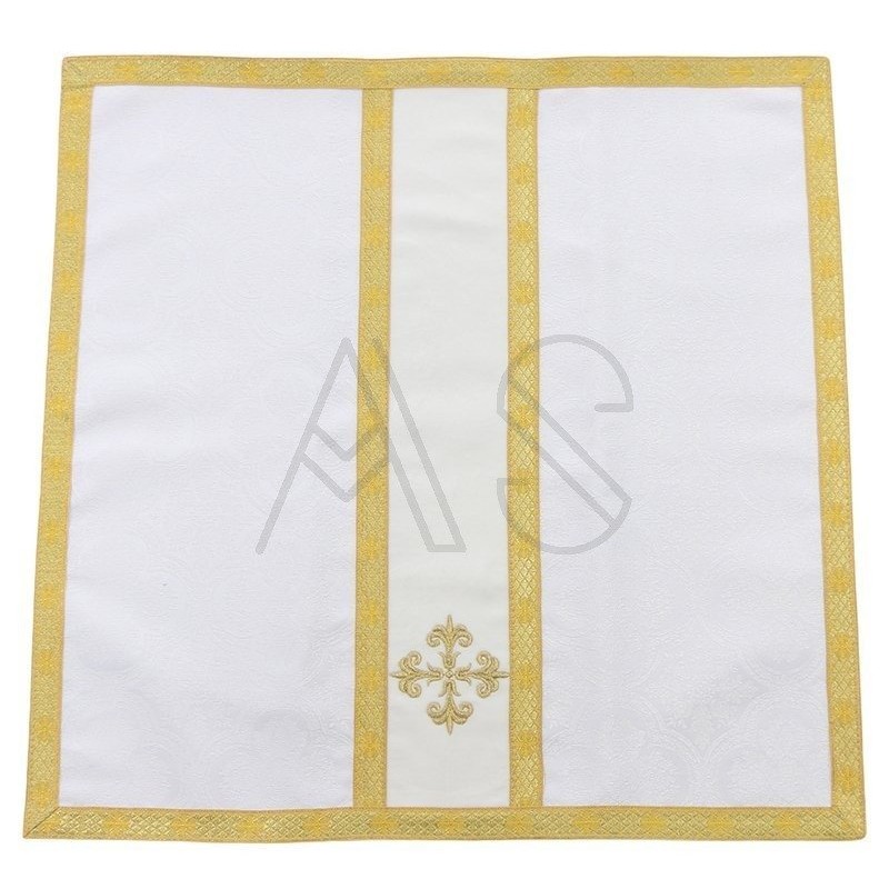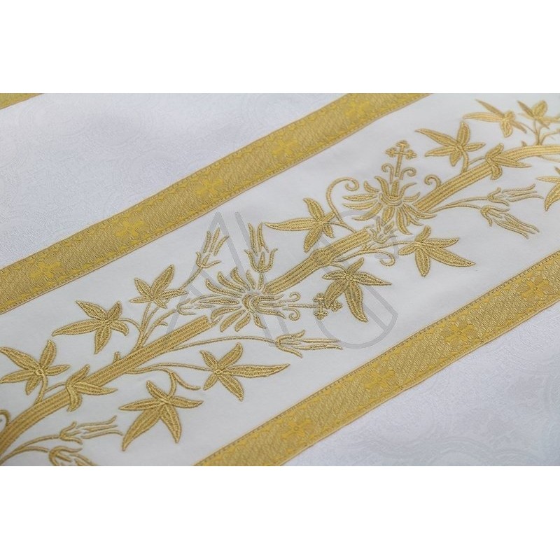 Acompanha uma estola, manípulo, bolsa corporal e véu de cálice.
