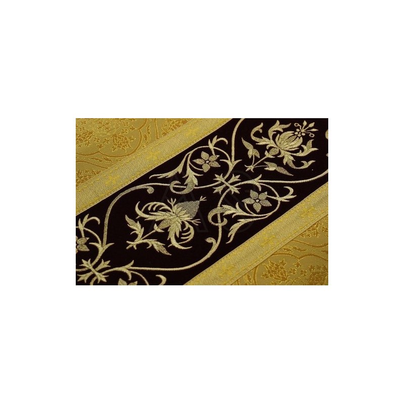 Casula semigótica bordada em alto relevo com listra de tecido em veludo.